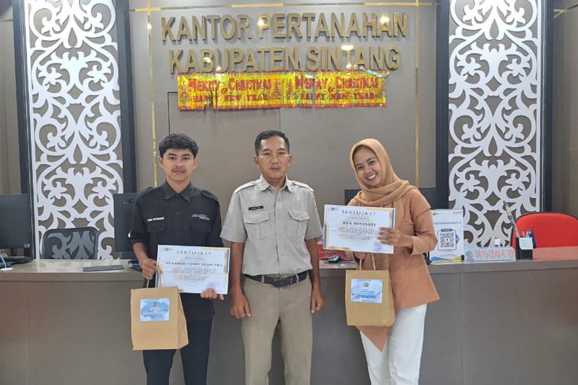Hallo #SobATRBPN Senin, 22 Desember 2025 telah dilaksanakan pelepasan siswa-siswi PKL jurusan Manajemen Perkantoran SMKN 1 Sungai Tebelian di Kantor Pertanahan Kabupaten Sintang. Pelepasan siswa-siswi PKL ini ditandai dengan penyerahan bingkisan oleh Koordinator Kelompok Substansi Perencanaan Evaluasi dan Pelaporan, Sagino kepada siswa-siswi SMKN 1 Sungai Tebelian Sintang. Kantor Pertanahan Kabupaten Sintang memberikan kesempatan kepada siswa-siswi SMKN 1 Sungai Tebelian Sintang untuk belajar secara langsung dalam situasi kerja yang sebenarnya, serta dapat membantu siswa-siswi untuk belajar disiplin dan bertanggung jawab di lingkungan kerja. Salam Sintang Bersemi ( Bersemangat Melayani Negeri) Ikuti akun media sosial Kantor Pertanahan untuk info terkini. Facebook: @atrbpnsintang Instagram: @kantahkabsintang Twitter: @atrbpnsintang Youtube: ATR/BPN Kab.sintang Untuk Layanan informasi dan pengaduan silahkan hubungi * 0811 1068 0000 (Hotline WA Pengaduan Kementerian) * 0815 2848 6709 (WA Loket Pelayanan Kantor Pertanahan Kabupaten Sintang) #ZonaIntegritas #catur_widha #kantorpertanahankabupatensintang #kantahkabsintang kantahkabsintangBersemi ATRBPNKalbar BPNKalbarHebat ATRBPNKiniLebihBaik ATRBPNMajudanModern MelayaniProfesionalTerpercaya negaRAhadir