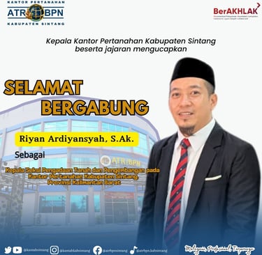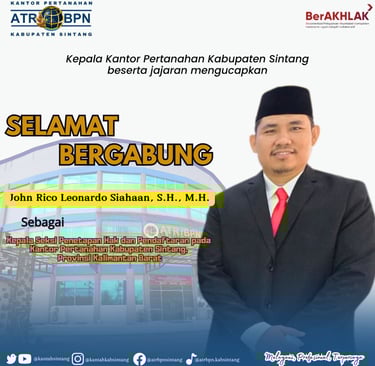 Hallo #SobATRBPN Seluruh jajaran Kantor Pertanahan Kabupaten Sintang mengucapkan selamat datang kepada para pejabat struktural baru yang kini bergabung di lingkungan Kantor Pertanahan Kabupaten Sintang. Semoga dapat beradaptasi dengan cepat, membawa semangat baru dan bersama-sama mewujudkan pelayanan pertanahan yang semakin optimal Salam Sintang Bersemi ( Bersemangat Melayani Negeri) Ikuti akun media sosial Kantor Pertanahan untuk info terkini. Facebook: @atrbpnsintang Instagram: @kantahkabsintang Twitter: @atrbpnsintang Youtube: ATR/BPN Kab.sintang Untuk Layanan informasi dan pengaduan silahkan hubungi * 0811 1068 0000 (Hotline WA Pengaduan Kementerian) * 0815 2848 6709 (WA Loket Pelayanan Kantor Pertanahan Kabupaten Sintang) #ATRBPNAntikorupsi #ZonaIntegritas #catur_widha #kantorpertanahankabupatensintang #kantahkabsintang #kantahkabsintangBersemi #ATRBPNKalbar #BPNKalbarHebat #ATRBPNKiniLebihBaik #ATRBPNMajudanModern #MelayaniProfesionalTerpercaya #negaRAhadirYuk